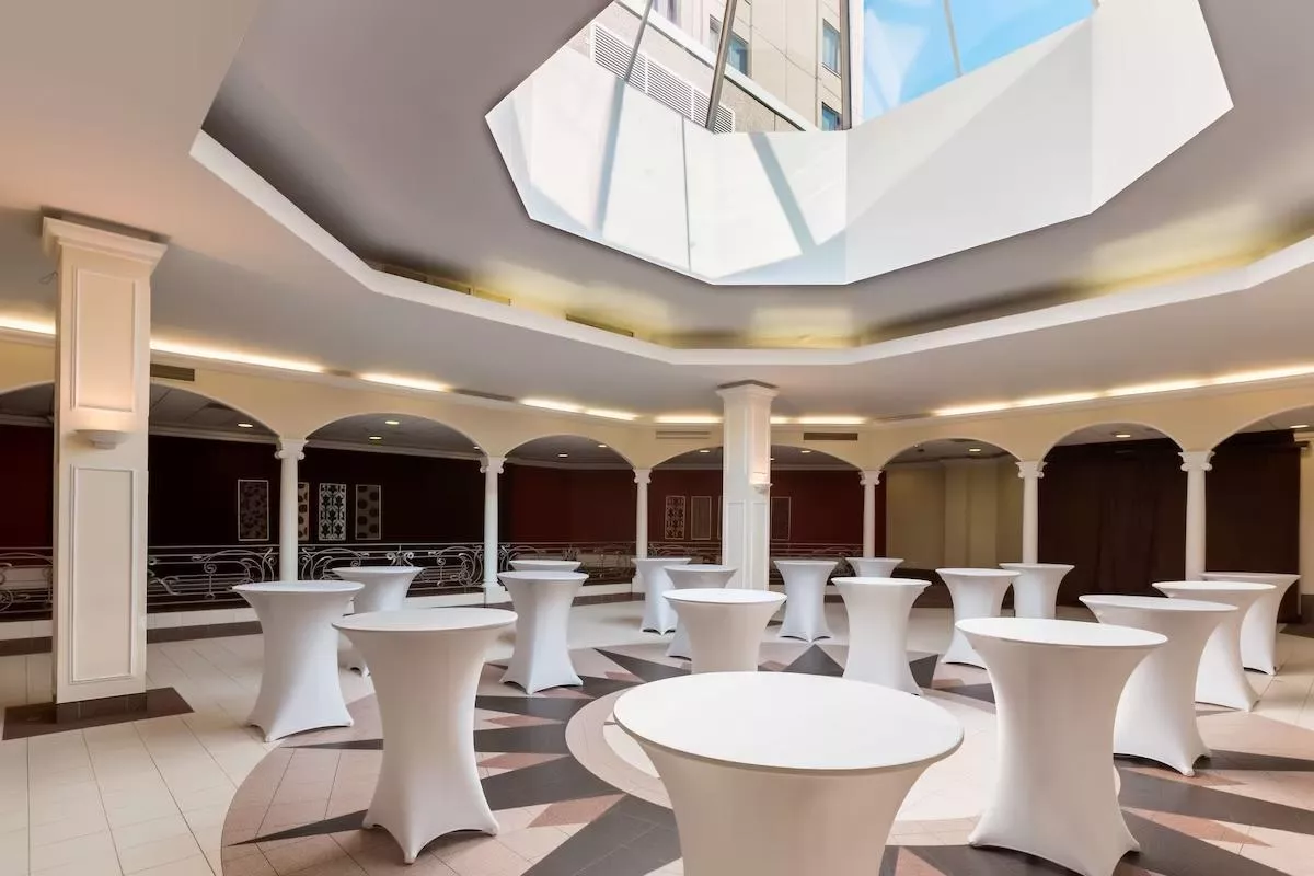 Выберите этот удобный светлый зал для мероприятий для проведения конференций, встреч, презентаций или переговоров за круглым столом. Наши залы оснащены новейшим аудиовизуальным оборудованием, а наша опытная команда поможет вам все спланировать до мельчайших деталей. Доступно для инвалидных колясок.